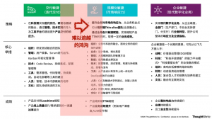 银行企业业技分家的固有思想,技术支撑业务、服务业务但很难影响业务,放到转型中,交付敏捷的迭代交付和规模化敏捷的业绩融合,完全是两个东西。 想做规模化敏捷,要有归零的心态,直接从业务入手,使用业务敏捷方法,找到业务机会点,使用科技手段落地,解决业务的问题,取得业务成效后,再予规模化。
