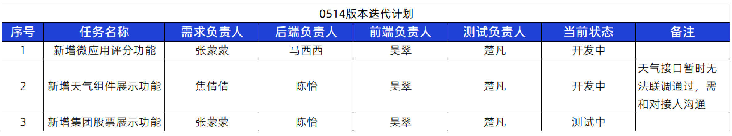 根据需求的紧急程度和排期要求,提前两周制定迭代内容,并将版本更新内容和计划同步给相关干系人。