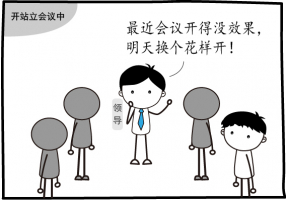 但如果某种仪式感对团队造成了 负担,或者 变成 例行公事,甚至变成一种 惩罚方式。团队因不满某种仪式感而产生的负面情绪就会影响到会议、工作。例如上述图中无法进行的“俯卧撑会议”以及独断专行的“计划会议”。