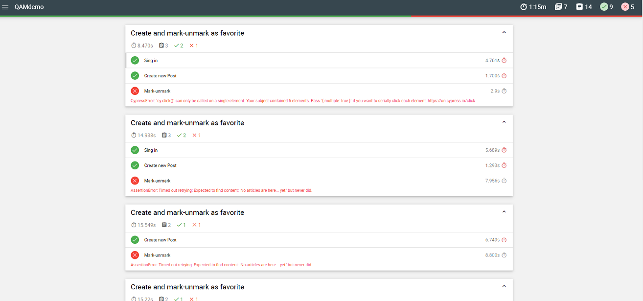 cypress 支持自动录制执行过程,自动截取运行结果图片。四、总结