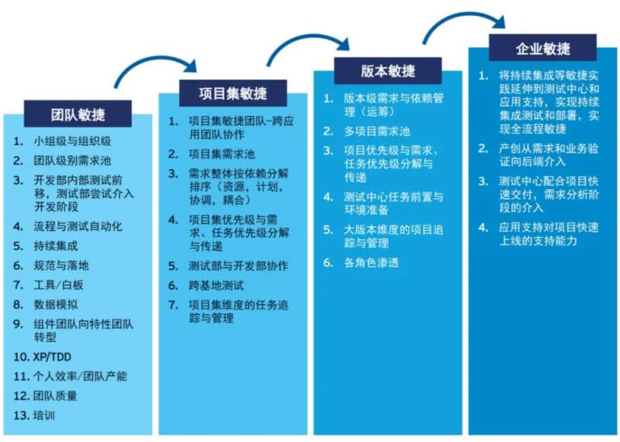 一般而言,只有当企业实施项目集的敏捷开发一年以上,并获取足够的成功经验后,才可以考虑逐步将敏捷实践的规模进一步扩大。