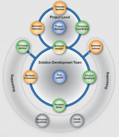 项目级别的角色会关心指导管理项目的各个方面,将负责与利益相关者进行交互,他们提供了项目所需的愿景,并努力确保能够实现愿景。2.解决方案开发团队