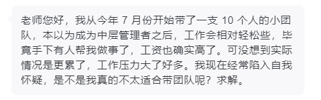 最近一段时间,后台有一位朋友留言,说感觉管理没有自己想象的那么轻松,怀疑自己能不能担任起一个优秀的管理者的角色: