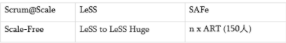 Scrum@Scale这种组织结构让人感觉和LeSS与SAFe都很不一样,后两者对于团队容器都有一个很清晰的容量限制,SAFe有ART的限制,LeSS也有Team的人数限制,后两者要突破限制就要添加新的Role和规则来平衡沟通的效率,本文的沟通饱和度一节会对这种设计进行详细分析。