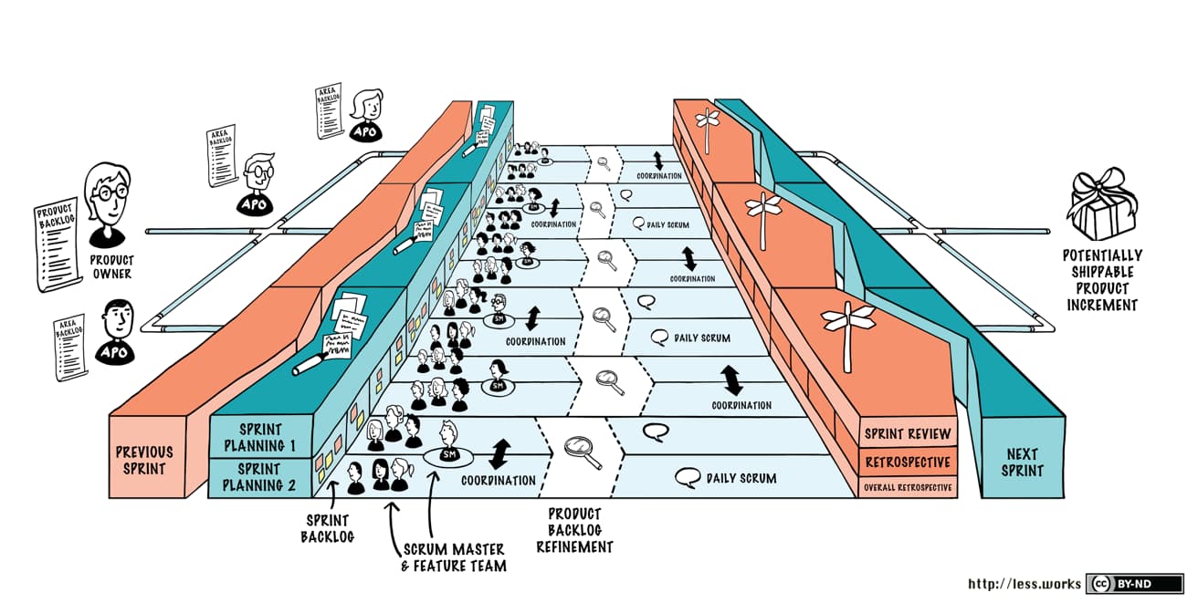 上篇文章《 LeSS 团队实践指南》中讲到 LeSS 框架中的团队数量不要超过8个,但8个以上的团队要如何实践敏捷呢?