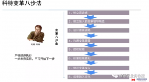 世界级变革大师Kotter·John P阐述了变革的八个步骤,这个方法适用于企业的任何重大变革,不止限于敏捷转型: