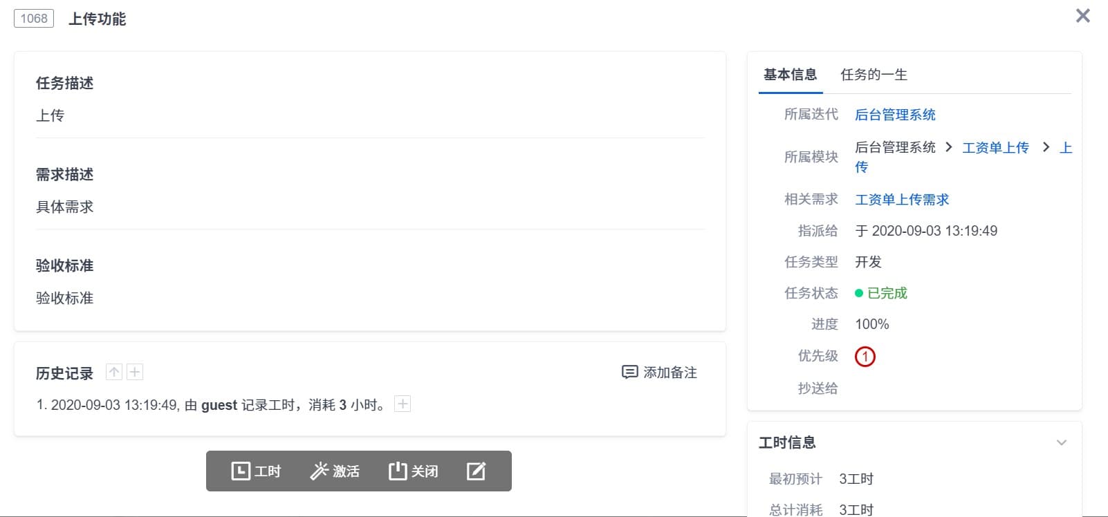 - 时间信息(创建时间、预估时间、耗费时间、到期时间)