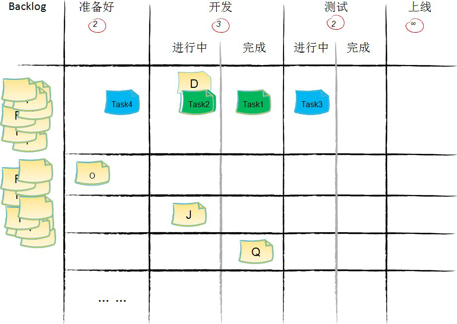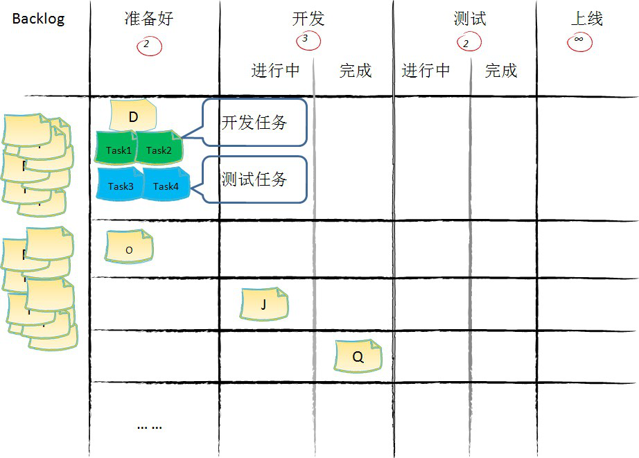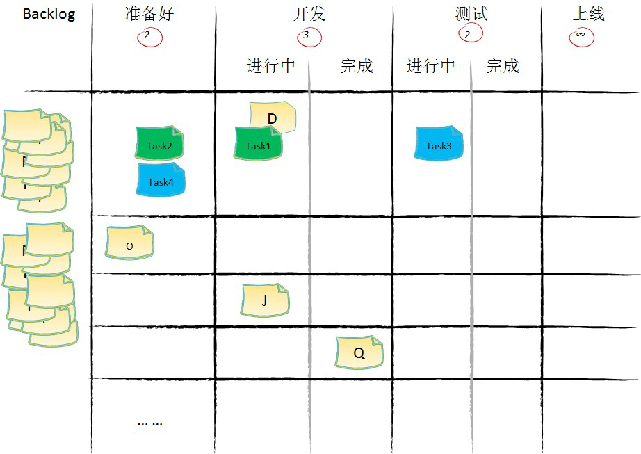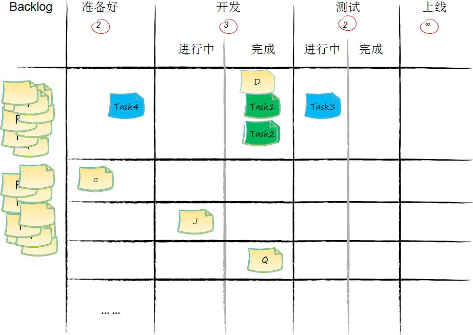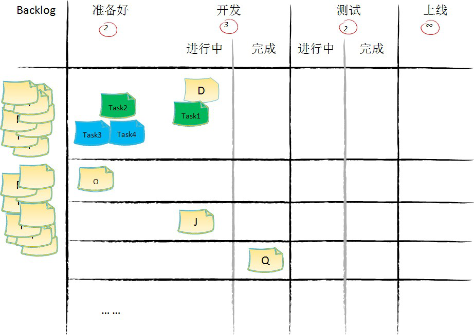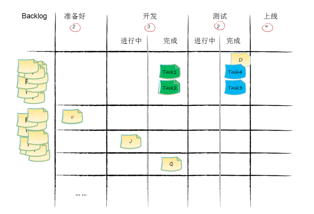 - 在看板上价值流动的单位是承载价值的工作项。不承载价值的工作项,比如开发任务、测试任务等,它们只在某一、两个或几个环节内流动,生命周期短暂。