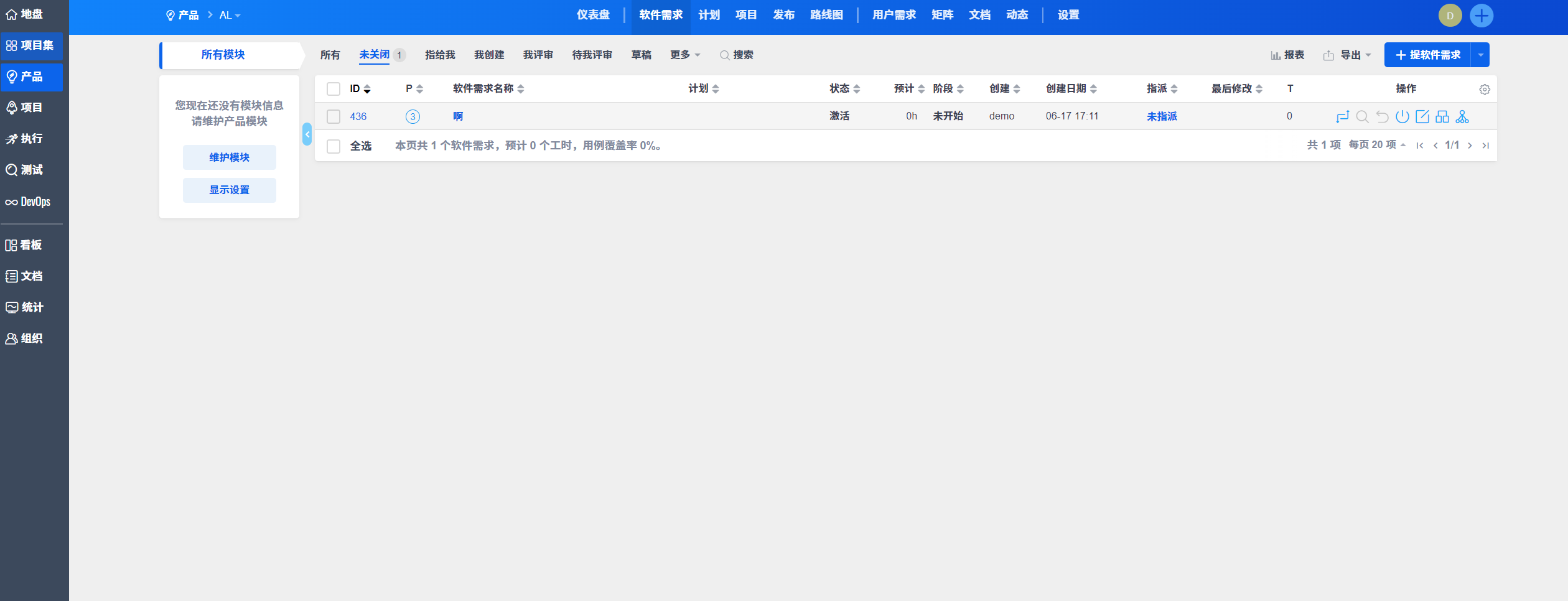 禅道demo界面: