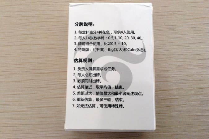 禅道敏捷估算扑克牌一套(2副):35元包邮。